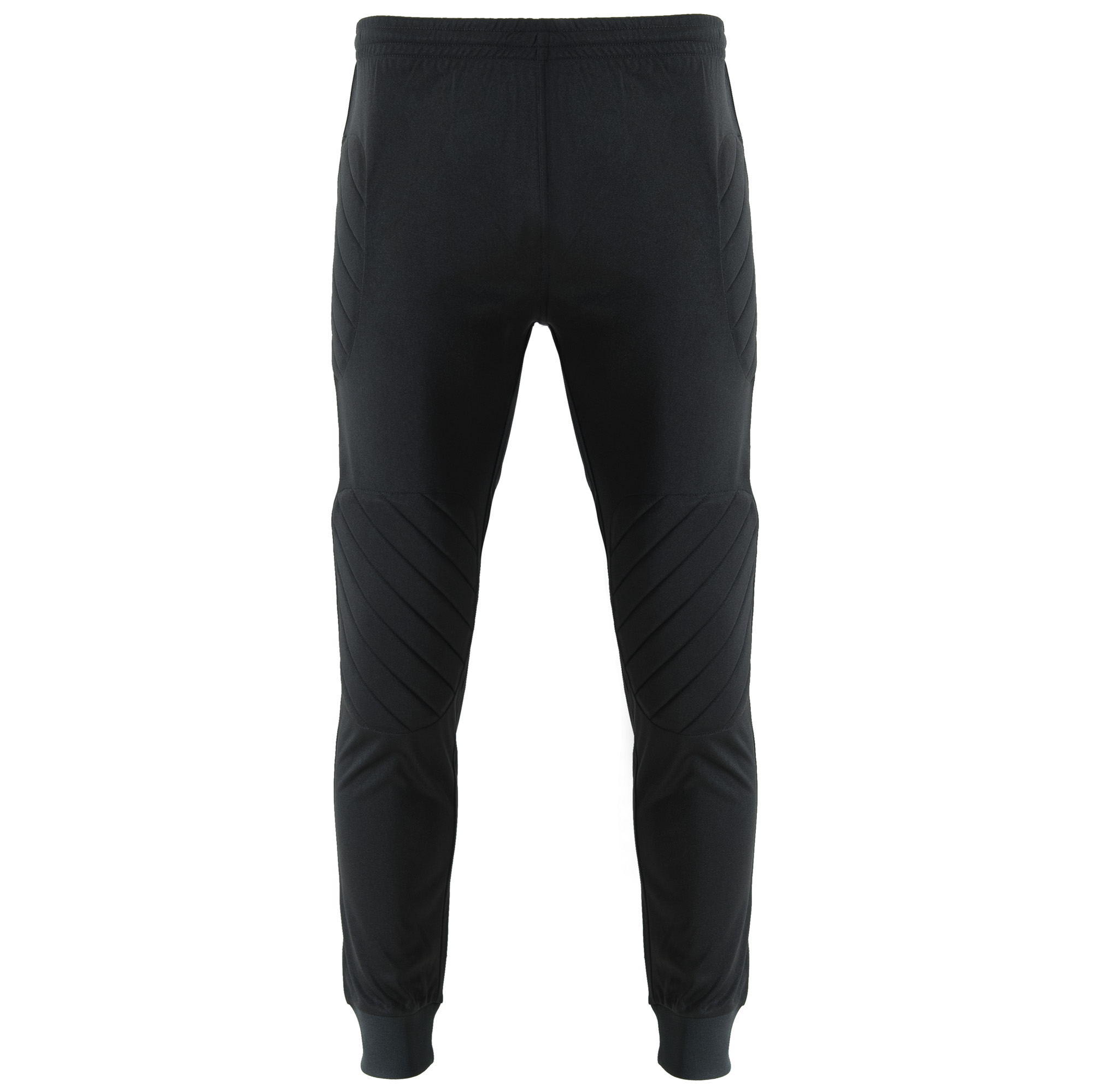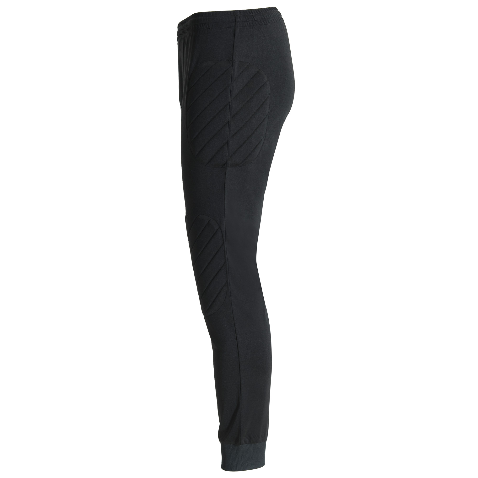 Pantalón largo de portero transpirable. Paneles laterales acolchados. Cintura engomada y cordón de ajuste. Rib 1×1 en tobillos.
