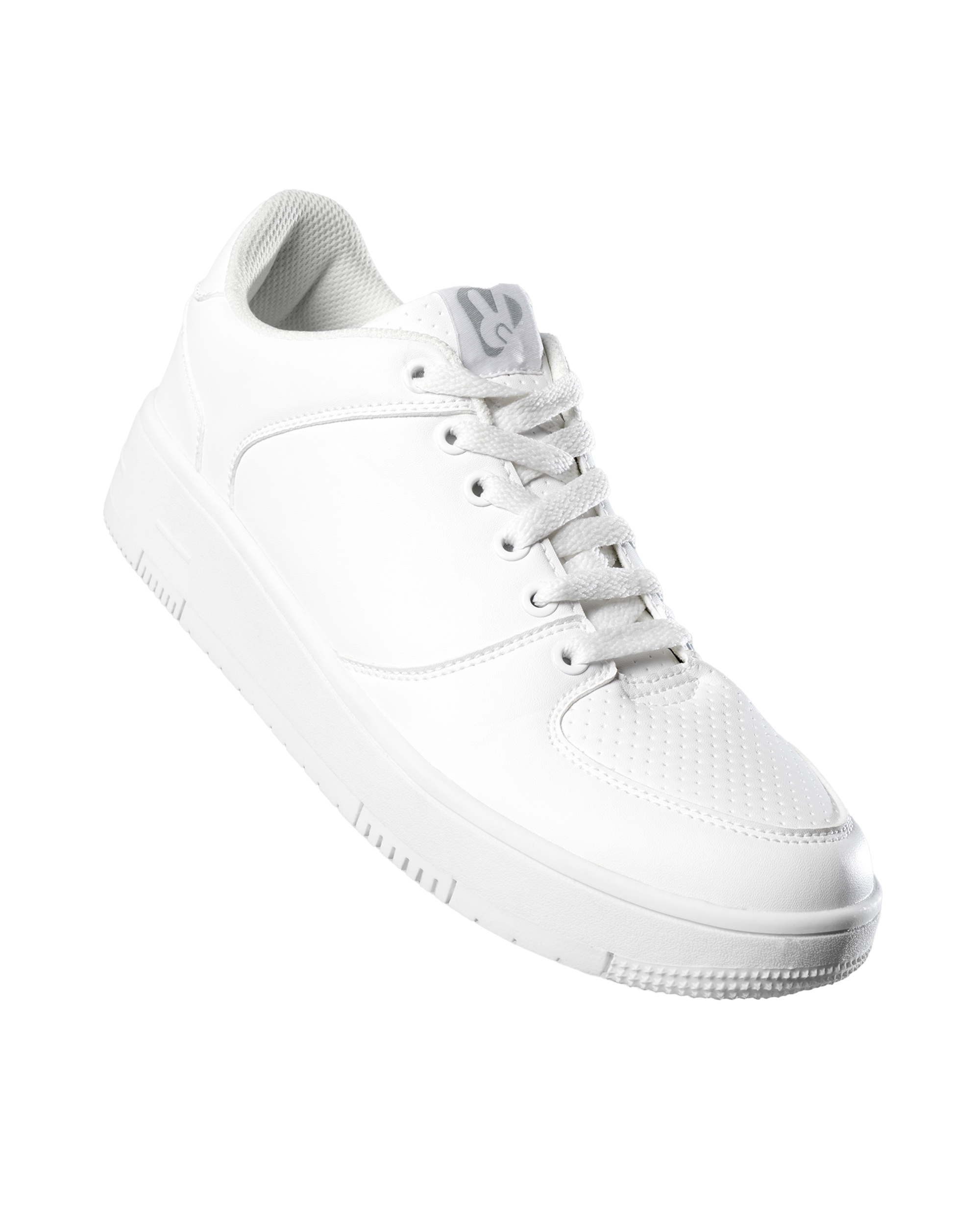 Zapatilla deportiva clásica. Cierre con ojales metálicos y cordones planos al tono. Pala: PU y PU microperforado. Suela: TPR. Interior: malla de poliéster acolchada. Plantilla foamizada.
