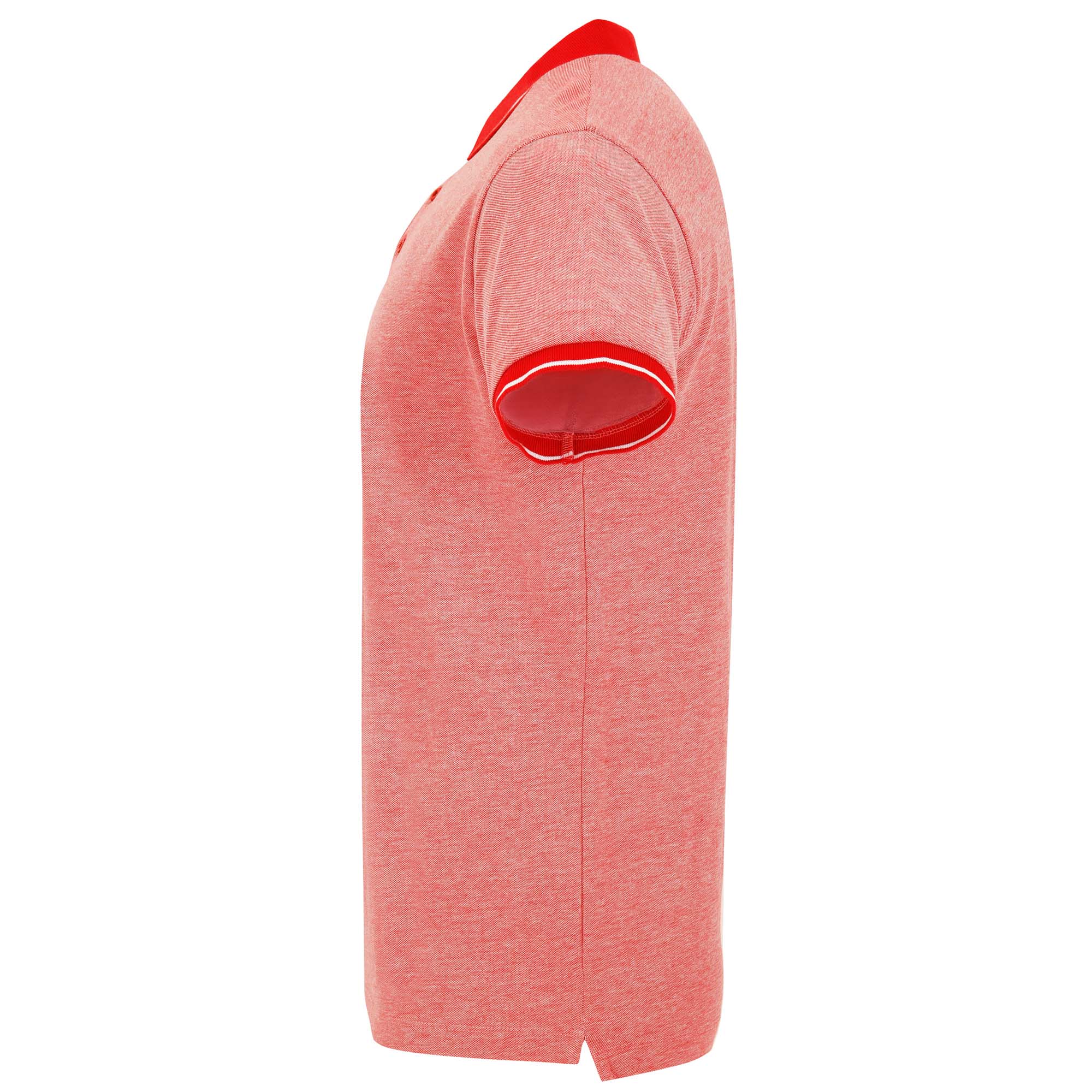 Polo Vigoré de manga corta. Cuello y bocamangas en color solido con canalé 1×1 y detalle decorativo a contraste. Tapeta interior con cinta decorativa a contraste y tres botones. Bajo con apertura lateral reforzada y cinta decorativa. Espalda ligeramente más larga que el delantero.
