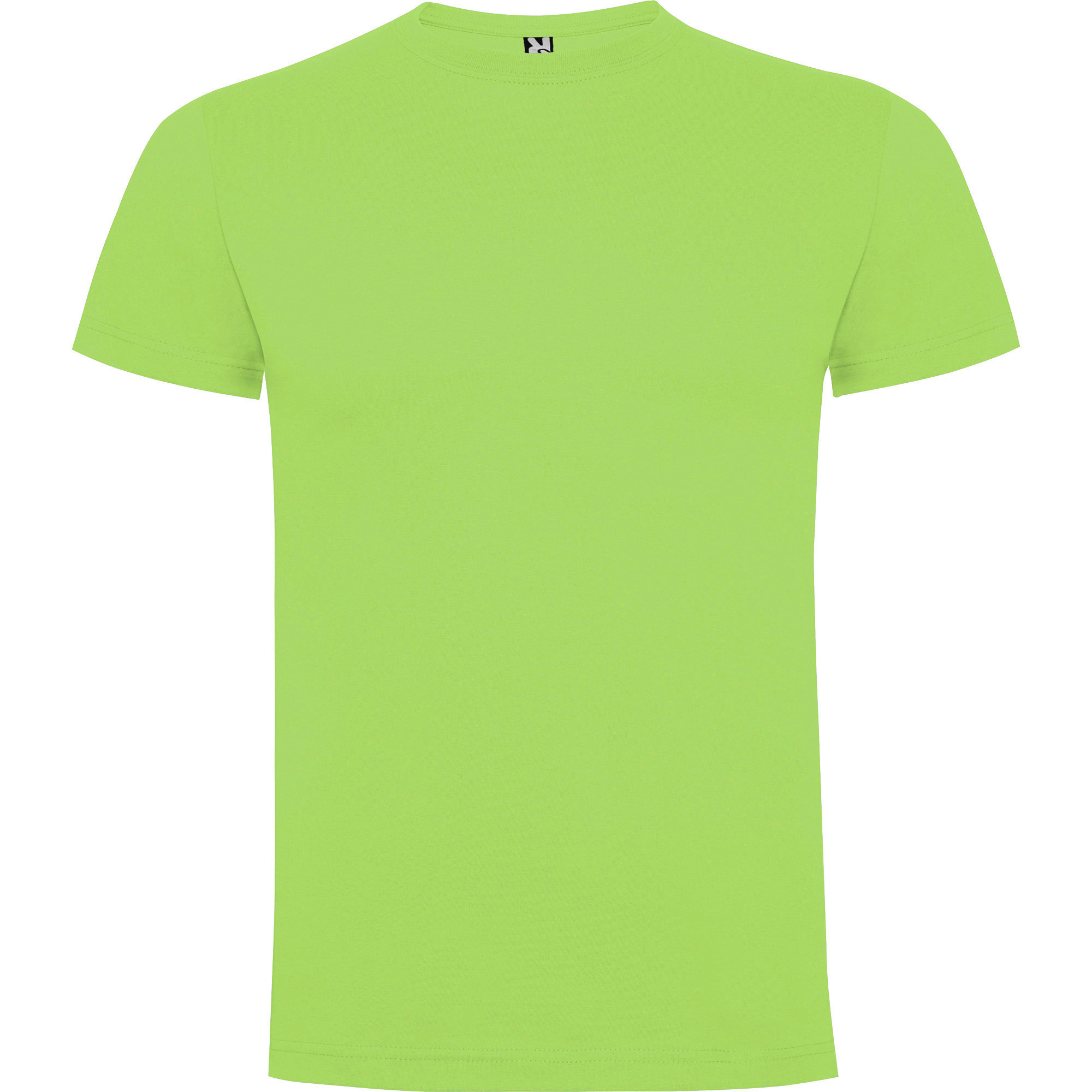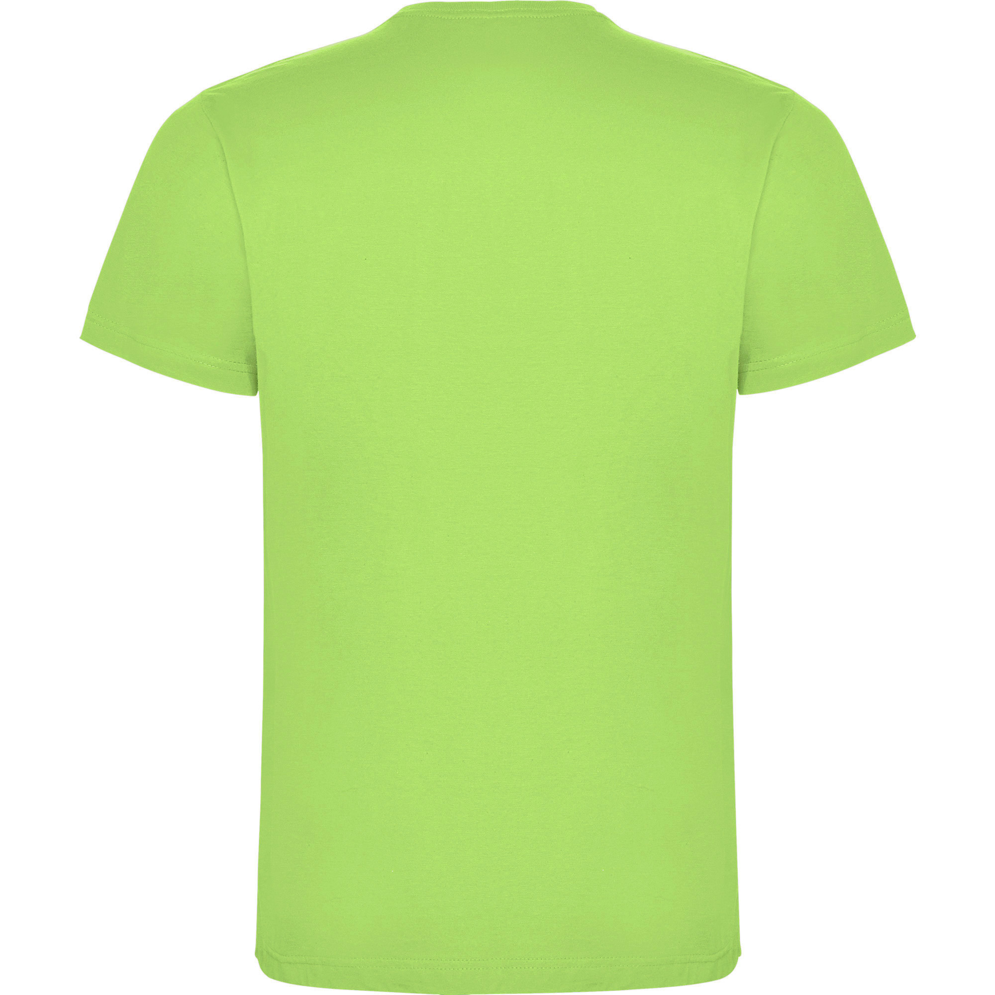 Camiseta de manga corta con costuras laterales. Cuello redondo en canalé 1×1 (4 capas). Cubrecosturas en cuello del mismo tejido.