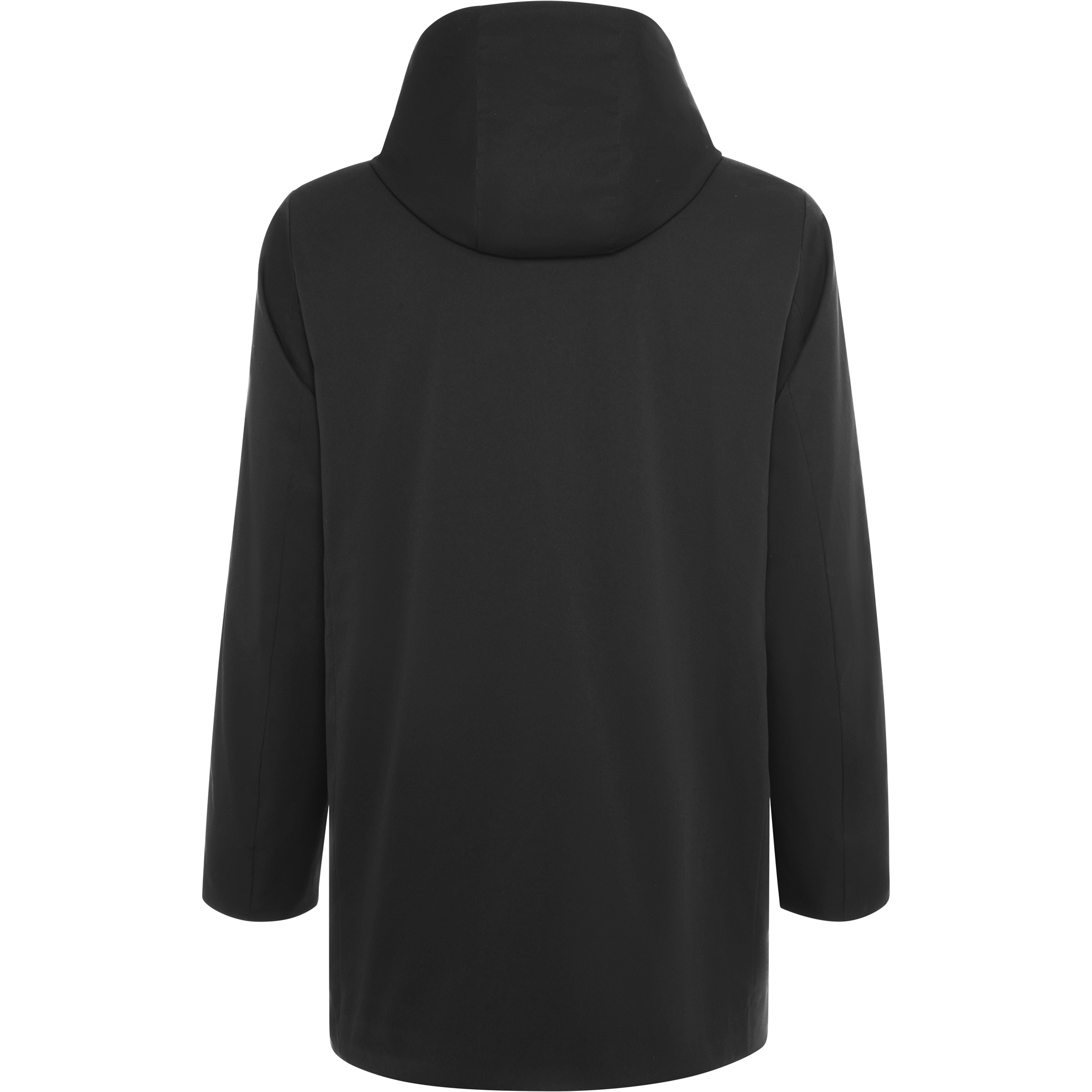 Parka acolchada 3/4 con cuello alto y capucha extraíble mediante cremallera. Cremallera central de doble dirección cubierta por una solapa cerrada con botones a presión. Dos bolsillos laterales con tapeta y cierre con botón a presión. Bolsillo interior con cierre de cremallera invisible. Acceso en espalda para reprocesos.