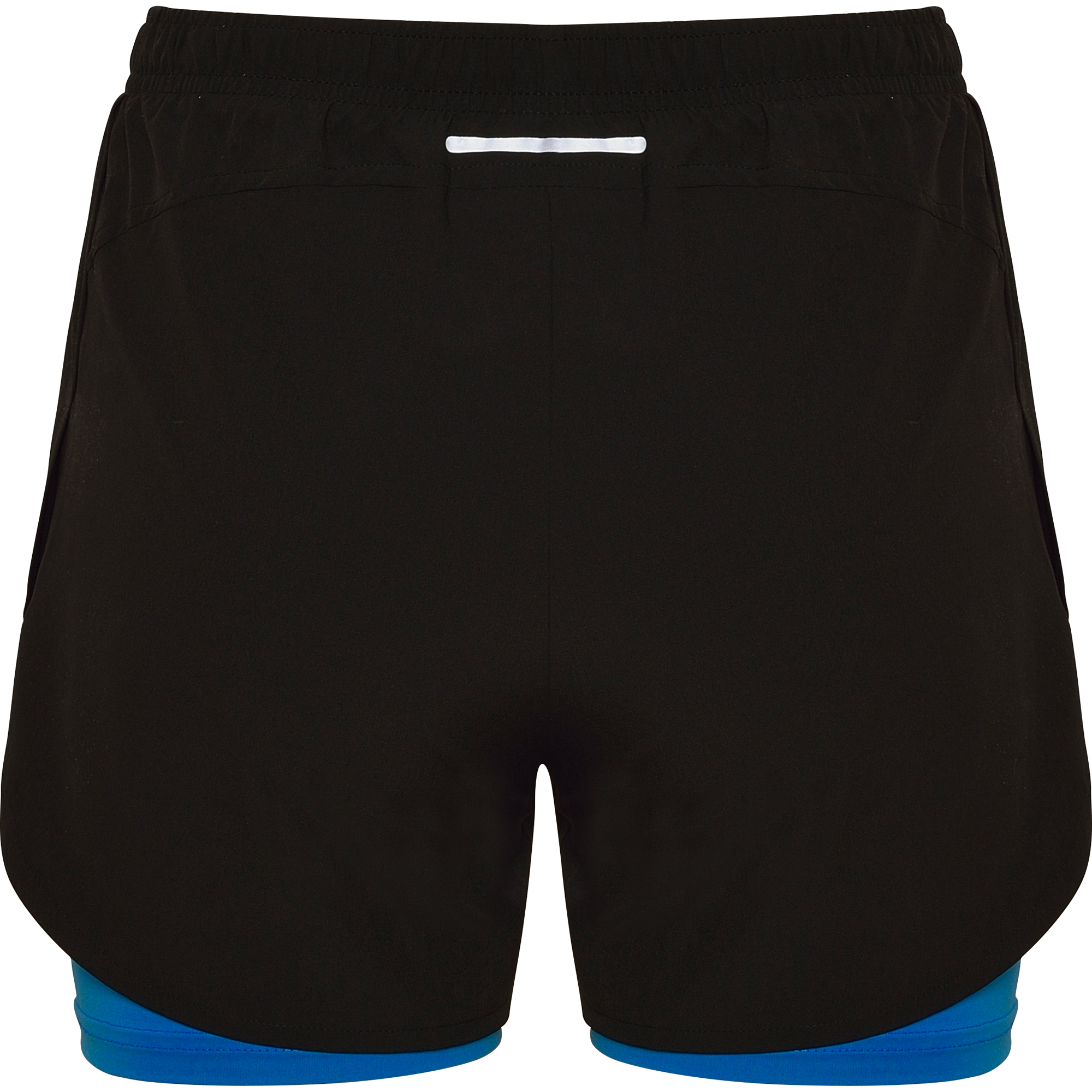 Pantalón corto running en tejido ligero y stretch. Malla elástica interior. Cintura engomada y cordón ajustable cruzado. Detalle reflectante en la parte trasera.