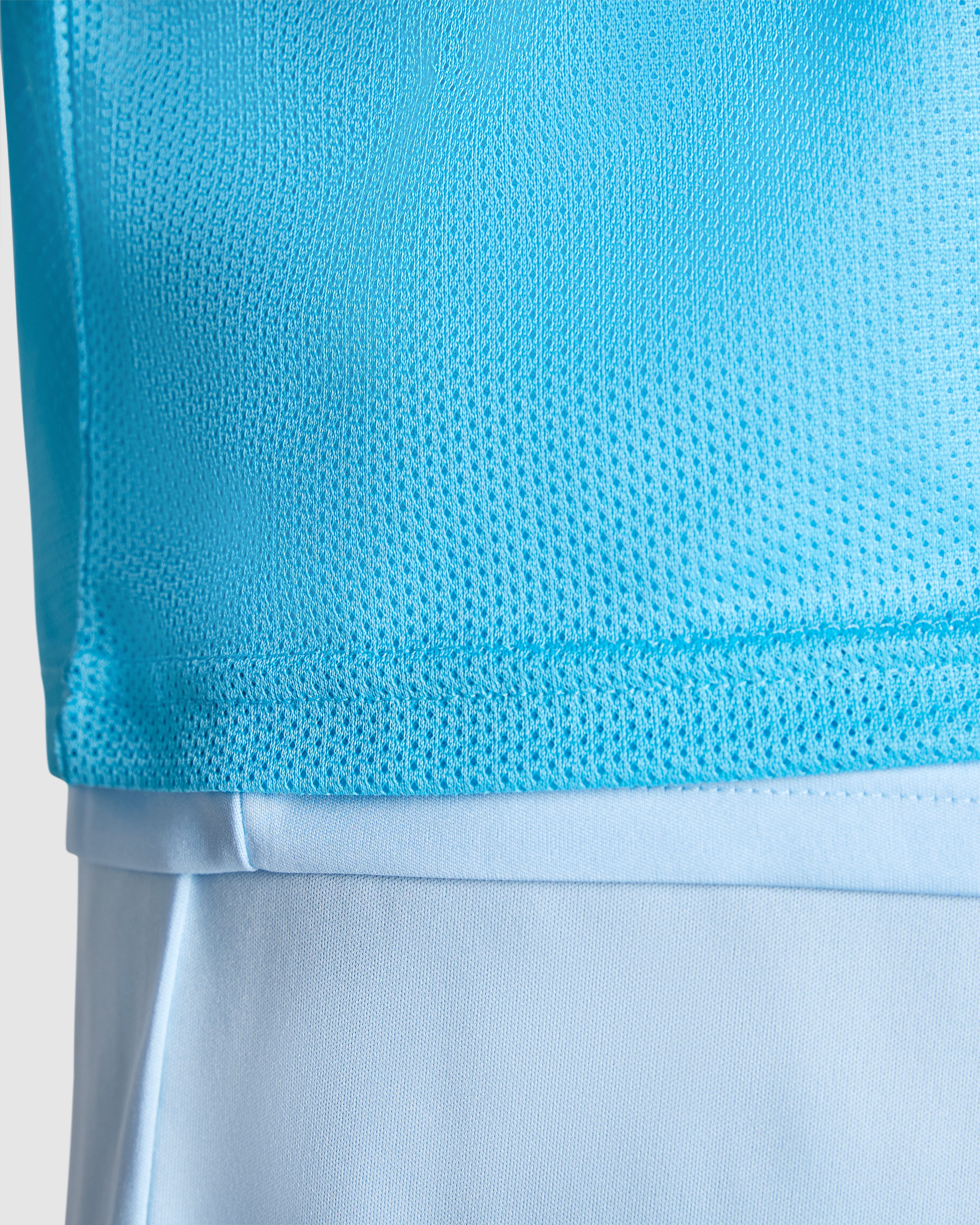 Peto deportivo unisex transpirable. Sisas y cuello ribeteados en el mismo tejido. Doble costura en el bajo.