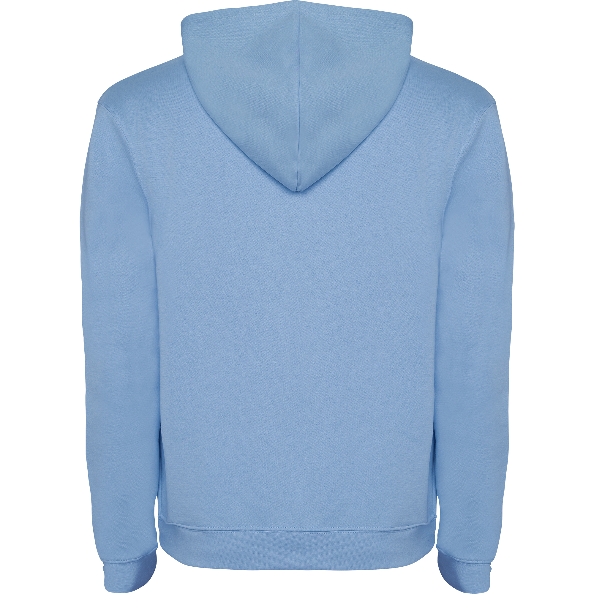 Sudadera con capucha forrada. Puños y cinturilla en canalé 2×1 con elastano. Cubrecosturas del mismo tejido. Cordón plano en capucha. Opciones de colores con capucha a contraste y ojales metálicos al tono.